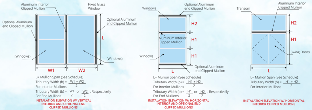 This product approval document (P.A.D.) Applies to two or more fenestrations mulled together in any combination where interior or end mullion is clipped to existing structure. Mullion’s structural adequacy has been verified